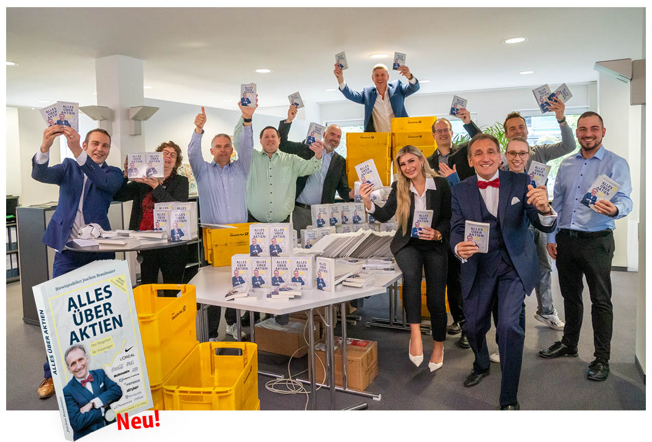 Wer noch kein “Alles über Aktien” Buch besitzt, unser Team freut sich auf Ihre Bestellung: (v. l.): Heiko Wennrich, Nicole Ickinger, Oliver Seibt, Frank Behlau, Dieter Beck, Heiko Strauß, Melissa Semic, Christoph Wendling, Joachim Brandmaier, Annika Steinwand, Andreas Gooß und Kevin Windmüller.