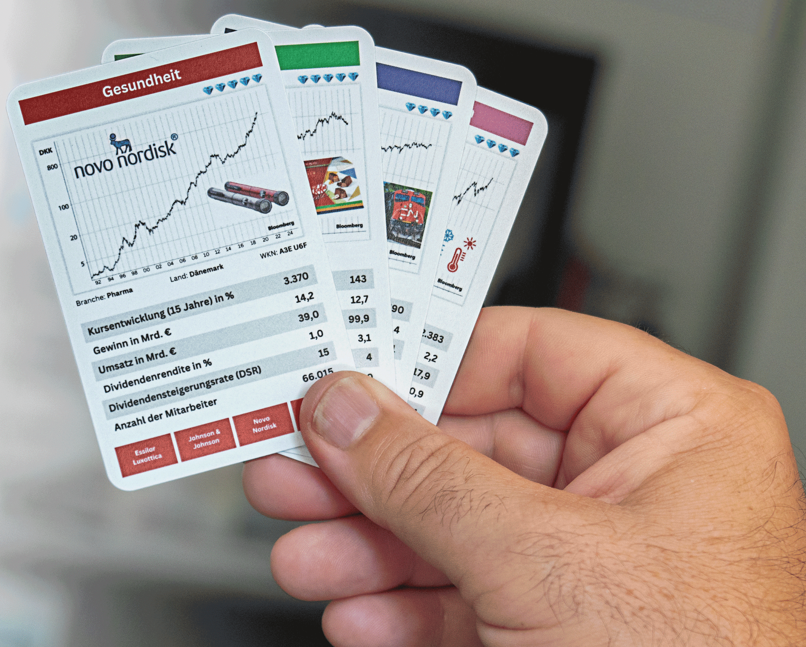 Spielen Sie gerne? Aber nicht verwechseln mit dem Zocken an der Börse. Unser neues Börsen-Quartett ist zwar etwas für Spieler, aber nicht für Spieler an der Börse! Im Gegenteil – mit 32 wunderschönen Karten – jeweils 4 Wachstumsaktien aus 8 Branchen – spielend zum langfristigen Vermögensaufbau!
