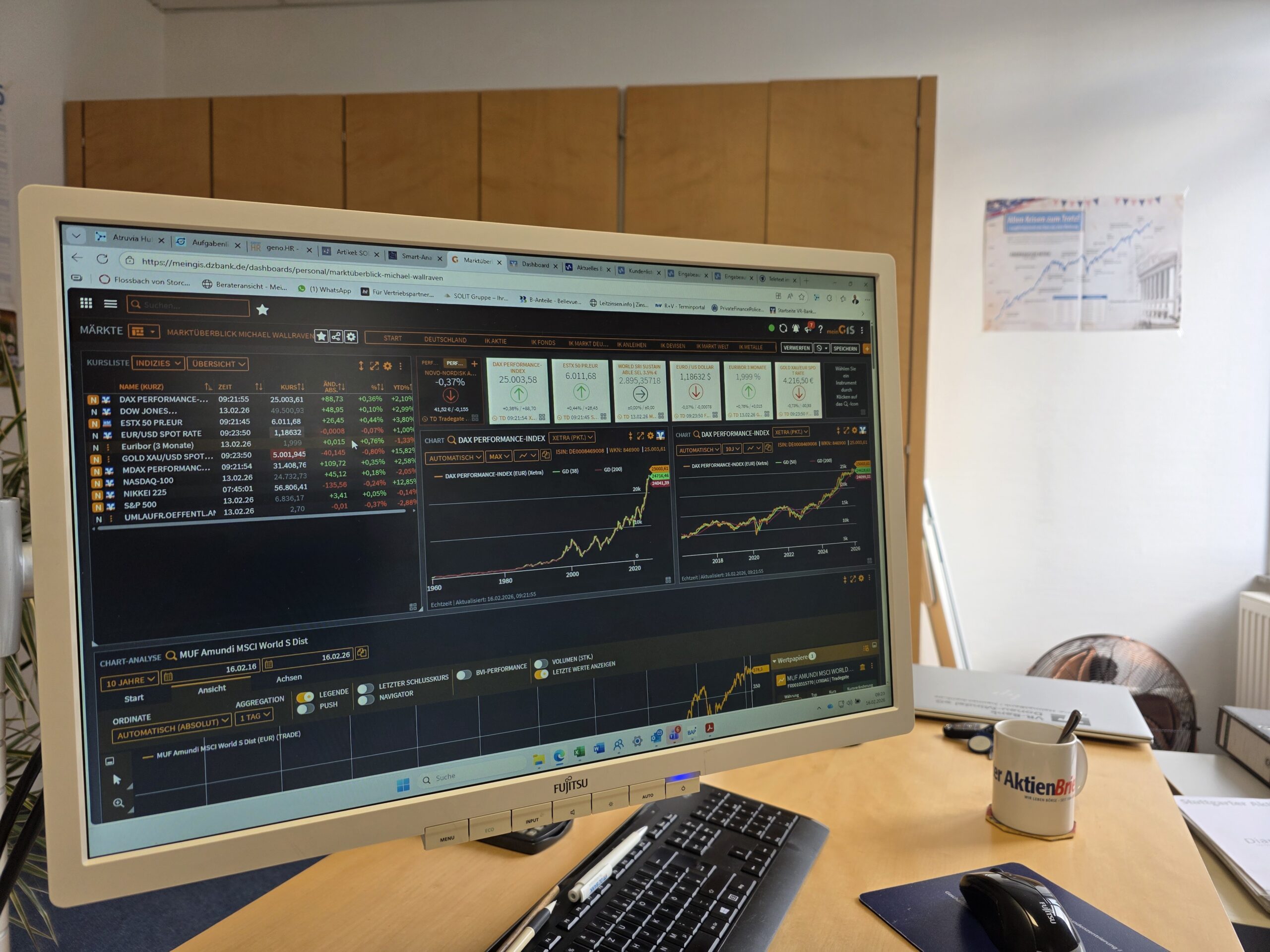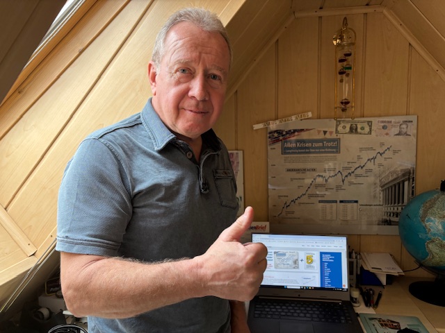 „Hallo, Herr Brandmaier! Wie gewünscht das Foto vom Wandplakat. Sie sehen die Pinwand in meinem Büro mit meinen Beteiligungen und dem neuen Wandplakat. Links oben ist mein Depotverlauf von 1996 bis 2025 – die Dividenden kommen noch dazu. Manchmal zahle ich mir auch ein „Gehalt „aus und manchmal schichte ich auch etwas z.B. in Edelmetall um. Das ist natürlich nicht berücksichtigt – sonst wäre die Entwicklung noch wesentlich besser. Ich habe mich 2016 aus dem Arbeitsleben verabschiedet – seitdem läuft es ohne große Ausrutscher nach unten stetig bergauf – weil es bei mir keine Zockereien mehr gibt … Schönes Wochenende, Ihr Chrisitian B.“