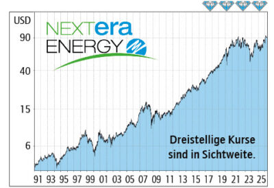 Über den zunehmenden Energiehunger der wie Pilze aus dem Boden schießenden Rechenzentren haben wir ja schon öfters berichtet. Zur Befriedigung der Nachfrage hat NextEra angekündigt, bis zum Jahr 2035 die Stromerzeugungskapazität um bis zu 30 GW auszubauen. Der Großteil der neuen Kapazitäten soll dabei auf die Erneuerbaren und Gaskraftwerke entfallen. Dazu hat NextEra vor kurzem eine Kapitalerhöhung in Höhe von zwei Milliarden Dollar durchgeführt. Derweil sind die Chancen gut, dass der Versorger 2026 vor einem neuen Rekordjahr steht. Beim Umsatz wird mit einem Sprung um 15 Prozent gerechnet. Der Gewinn soll laut Branchenexperten sogar um 23 Prozent klettern.