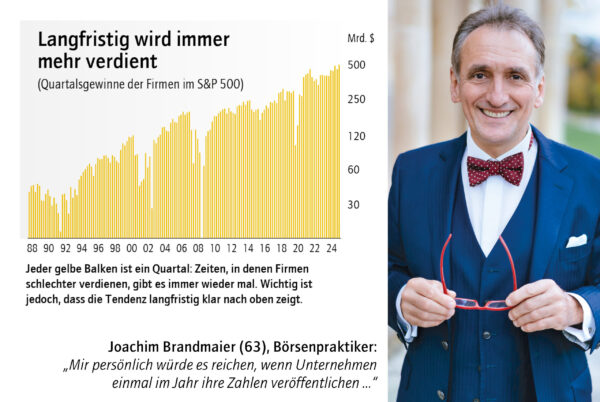 Natürlich darf man von einer Umstellung von Quartals- auf Halbjahres- oder gar Jahresberichte nicht erwarten, dass die Firmenvorstände plötzlich alle anfangen, in Jahrzehnten zu denken – zumindest nicht, solange dort kein Abonnent des Stuttgarter Aktienbriefs das Sagen hat. Aber es wäre ein gutes Signal: weg von der kurzfristigeren Denkweise, hin zu mehr Langfristigkeit!