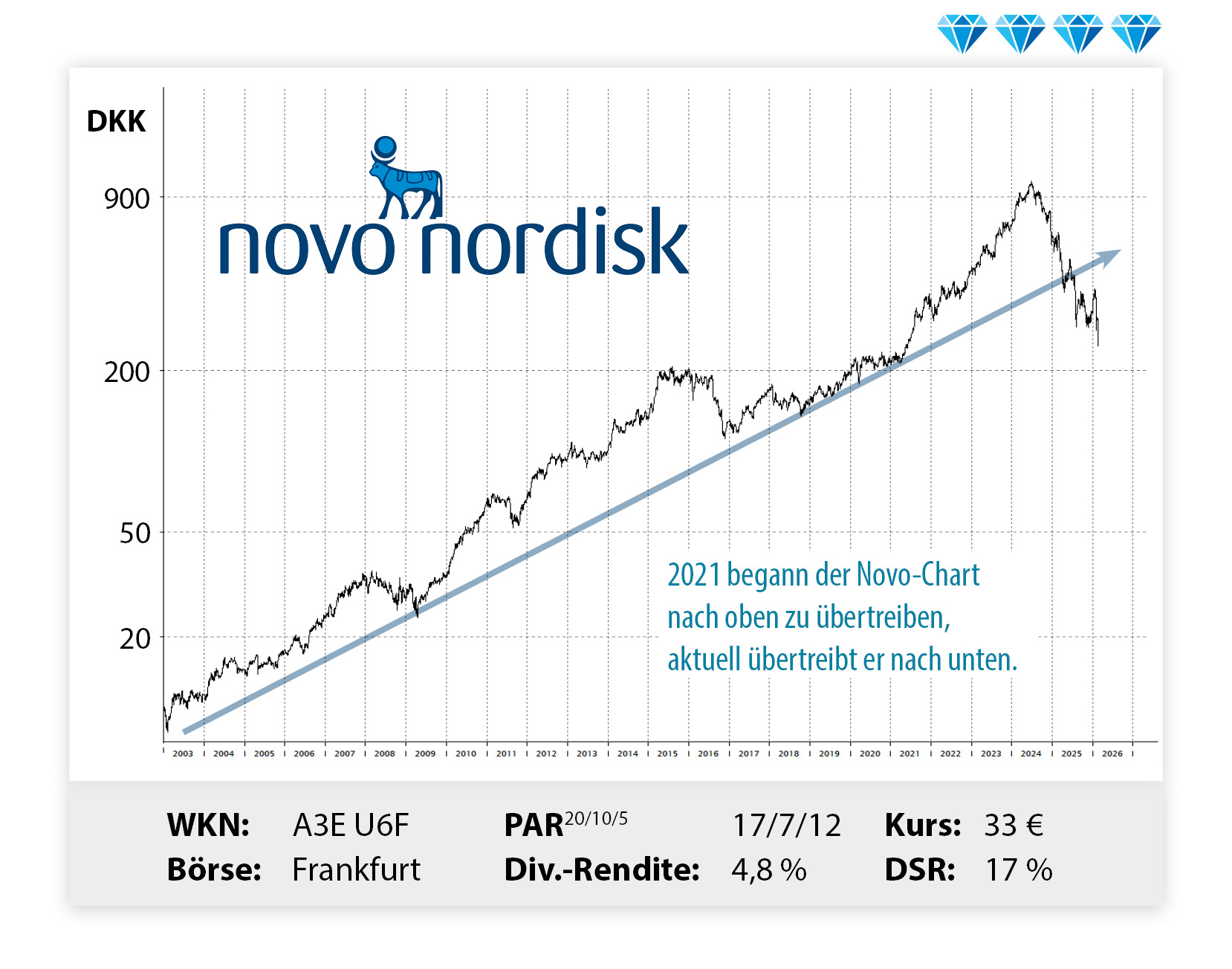 Leserfrage: Seid ihr immer noch von der Langfristperspektive von Novo überzeugt oder wackelt der vierte Diamant? Im ersten Fall wäre der aktuelle Kursrutsch doch eher ein Signal zum Kauf? Antwort: Der Kursrückgang der vergangenen 18 Monate ist ohne Zweifel schmerzhaft, besonders für die Investoren, die …