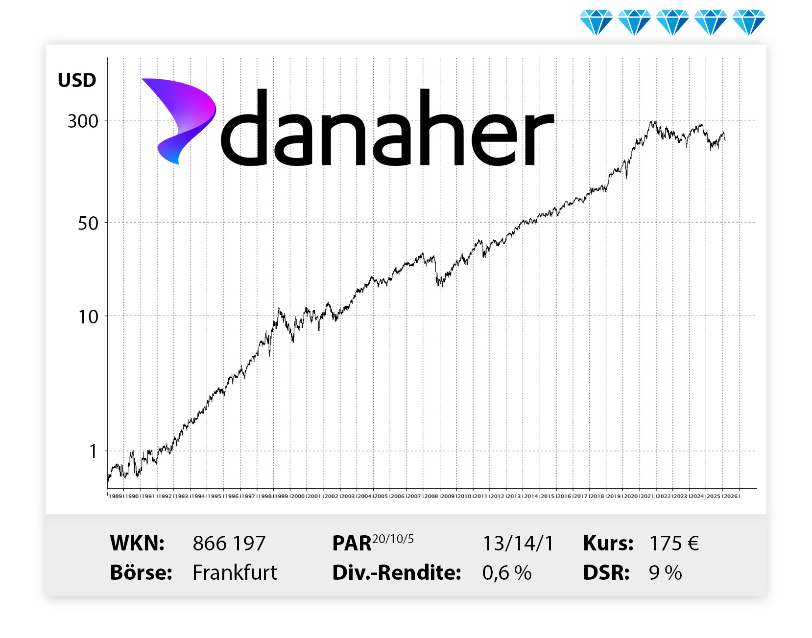 US-Konzern schluckt Medizintechniker für fast zehn Milliarden Dollar. Als wir Danaher vor über 20 Jahren in die Riege der Wachstumswerte aufgenommen hatten, war das Unternehmen noch ein waschechter Mischkonzern. Seither hat sich aber nicht nur die Aktie mehr als verzehnfacht, dank einer Reihe von Abspaltungen …