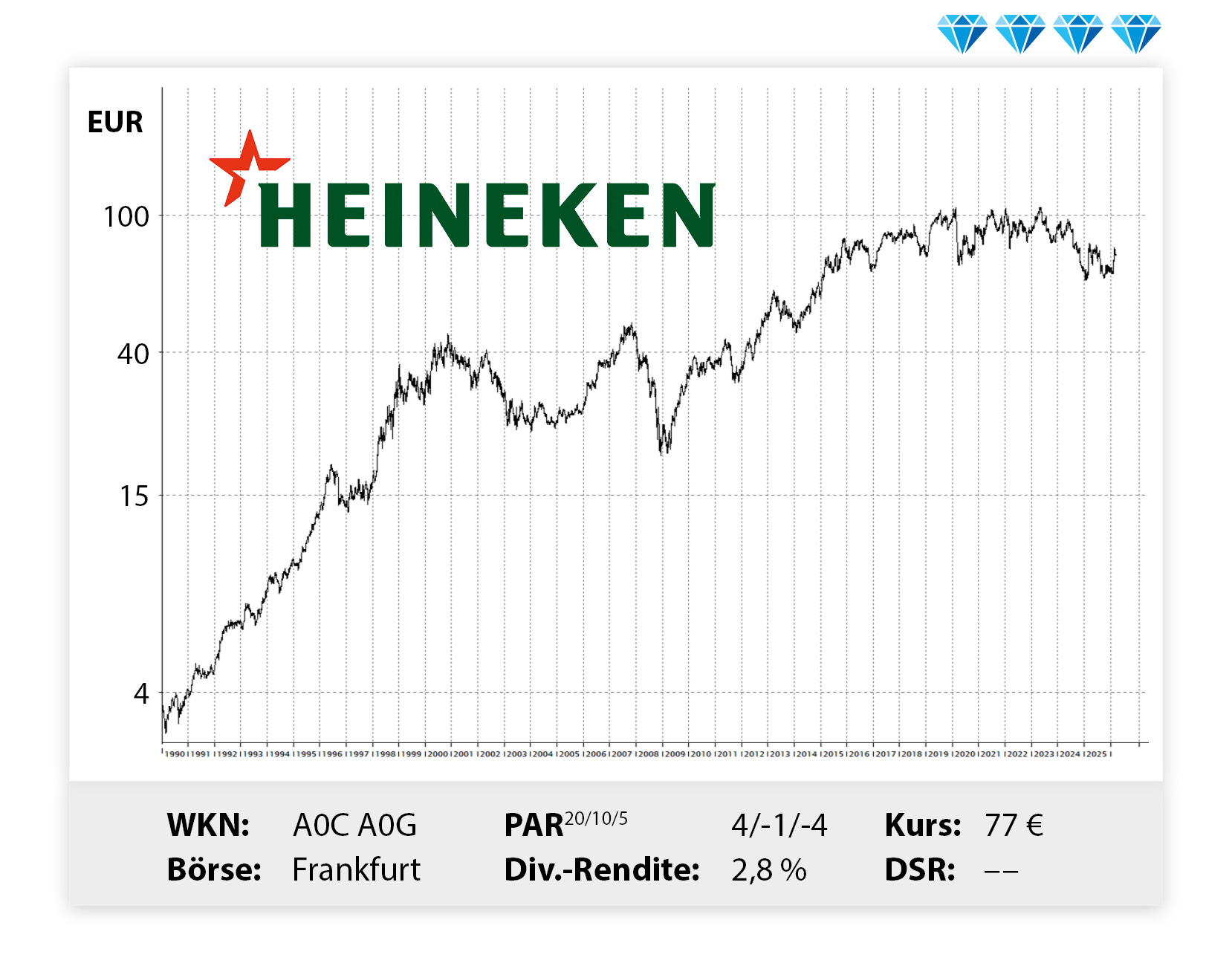 Aktie mit gutem Jahresstart. Brauereiwerte waren in den letzten Jahren an der Börse nicht übermäßig gefragt und dementsprechend mau war die Kursentwicklung bei den entsprechenden Aktien. Davon betroffen ist auch unser Vier-Diamanten-Titel Heineken. Seit Jahresanfang gibt es aber zumindest einen kleinen Lichtblick: Die Aktie konnte …