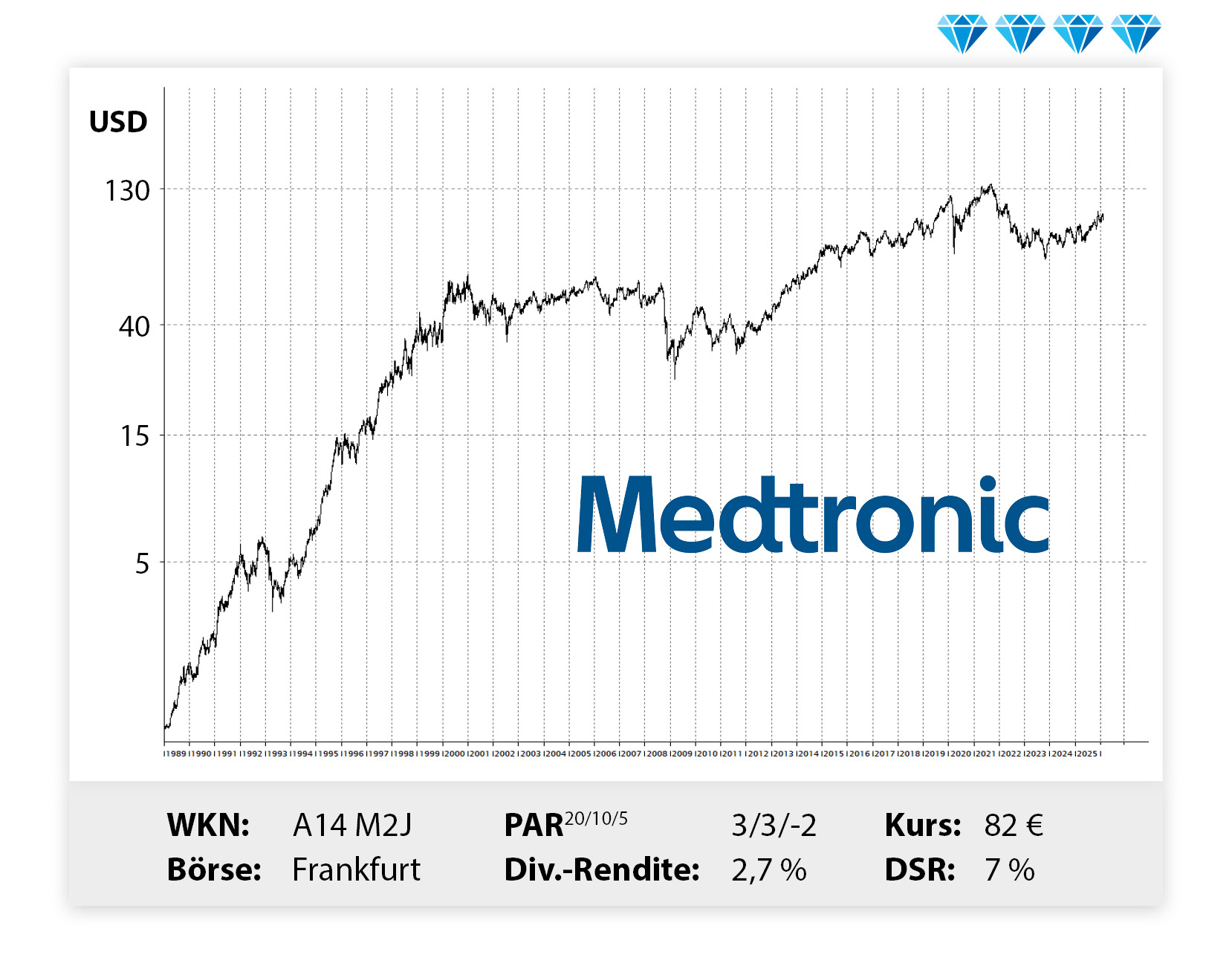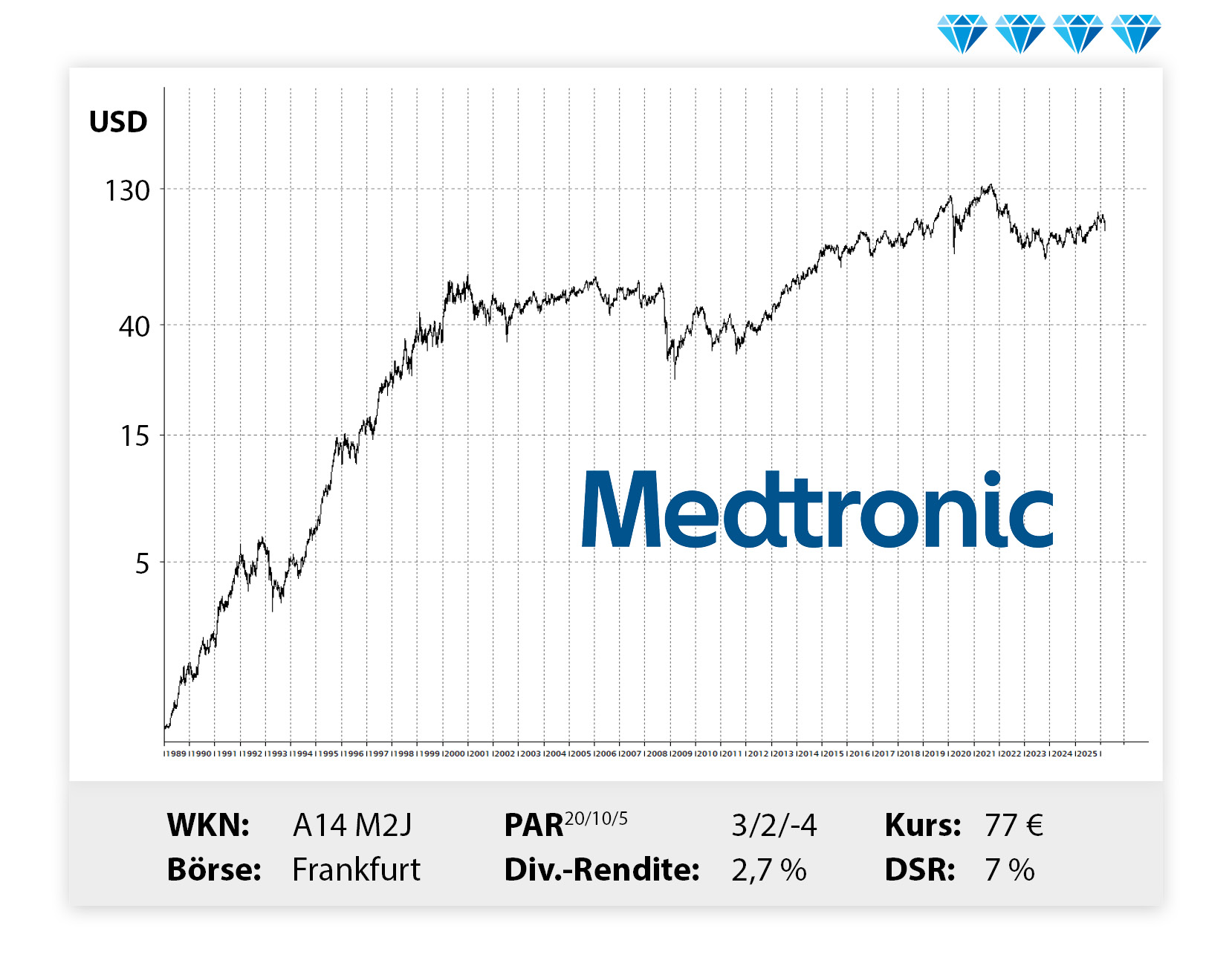 Noch 25 Prozent bis zum Allzeithoch. Durch die anhaltend hohe Nachfrage nach Herzschrittmachern, Defibrillatoren und Diabetesgeräten läuft es bei Medtronic wie geschmiert. Der Konzern ist auf gutem Weg im laufenden Geschäftsjahr, das am 30. April endet, neue Rekordzahlen abzuliefern. Im dritten Quartal hat das Unternehmen …