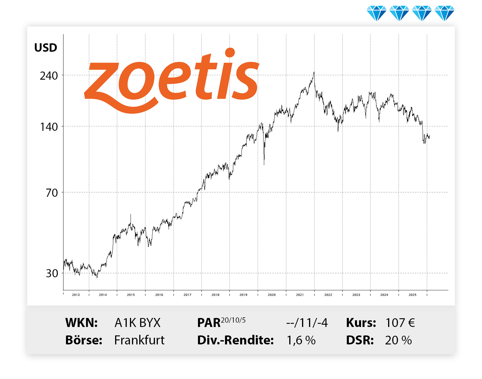 Der Konzern mit den tierisch guten Aussichten. Wir haben ja schon mehrmals unsere Meinung kundgetan, dass die Zoetis-Aktie von den Börsianern zu Unrecht vernachlässigt ist. Die neuesten Zahlen bestätigen das, denn der globale Marktführer, wenn es um Tiergesundheit geht, verdient so gut wie nie: 2025 …