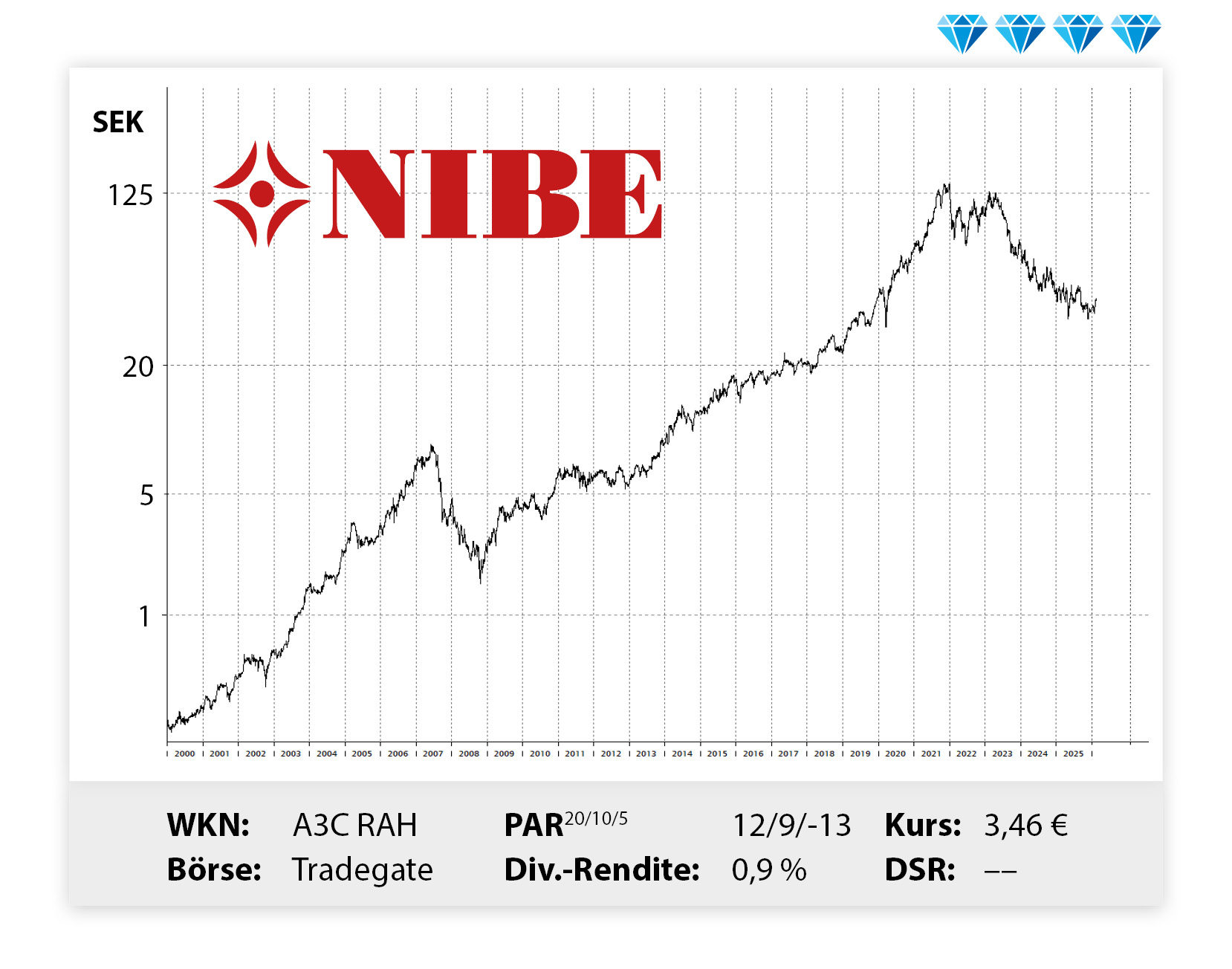 Dividende steigt auch wieder. Mit Spannung haben die Anleger auf die Quartalszahlen von Nibe gewartet – und anschließend mit einem kleinen Freudensprung reagiert. Zumindest deutet darauf der satte Kursgewinn gestern hin. Im vierten Quartal hat der schwedische Wärmepumpenhersteller seinen bereinigten Gewinn um 27 Prozent auf …