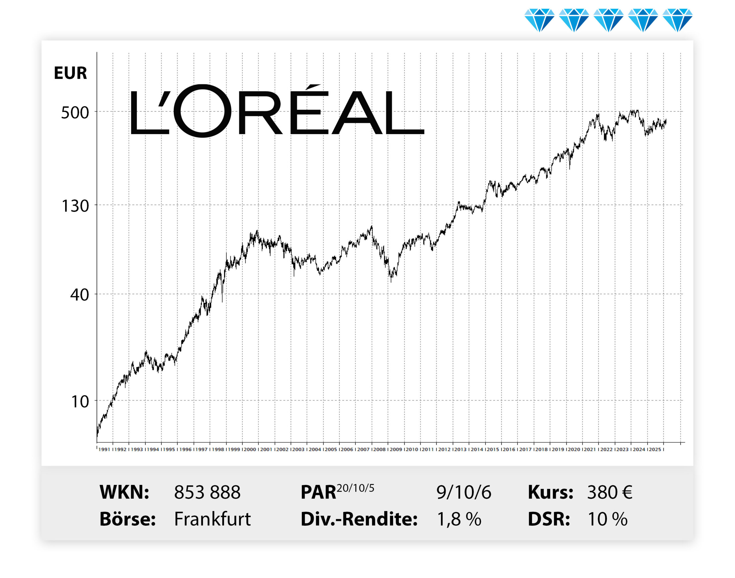 Mai-Dividende wird angehoben. Ein verlockendes Angebot könnte bald bei unserem Fünf-Diamanten-Konzern L’Oréal hereinflattern: In seinem Testament hat der italienische Modedesigner Giorgio Armani nämlich drei potenzielle Käufer für sein Milliardenimperium benannt. Neben EssilorLuxottica und LVMH findet sich darin der Name L’Oréal. Nicolas Hieronimus, Chef des weltgrößten …