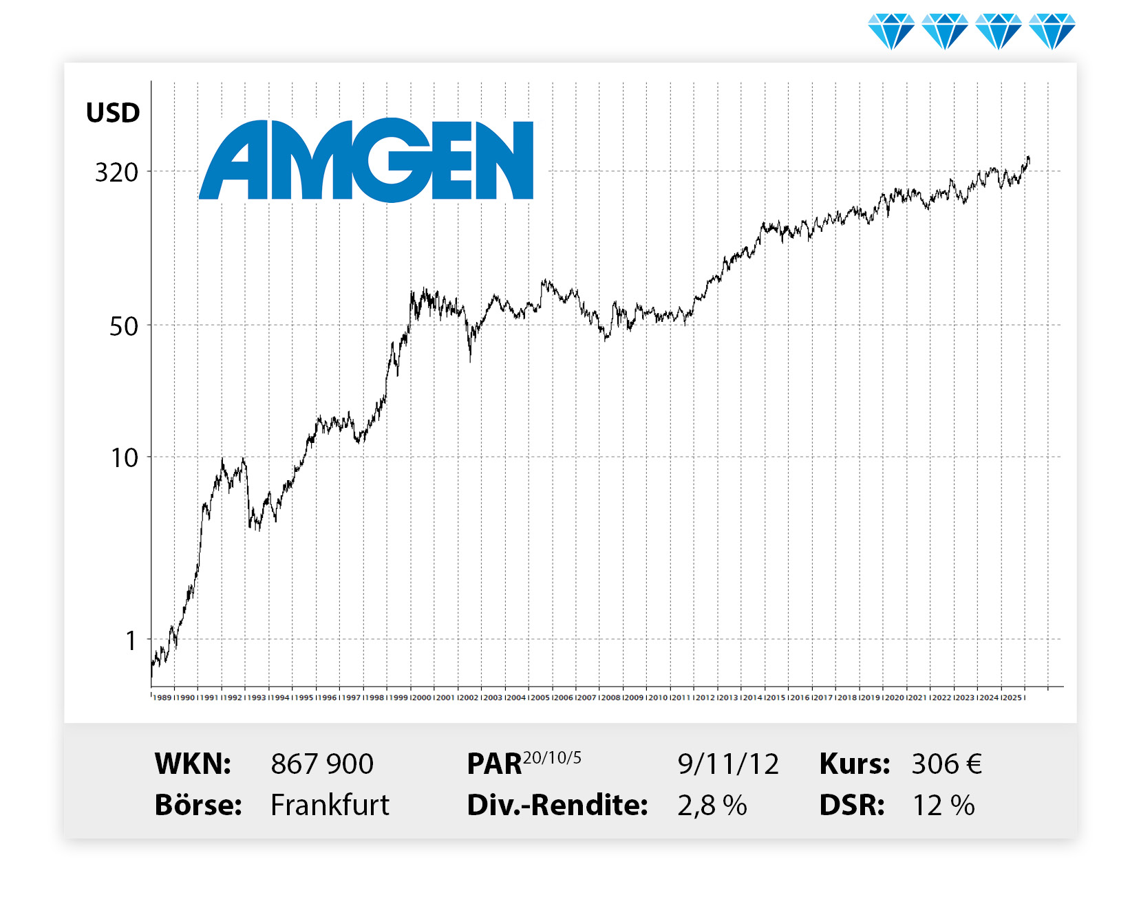 Biotechriese überzeugt mit breiter Angebotspalette und gut gefüllter Pipeline. Die Aktie des weltgrößten Biotechkonzerns hat die jüngsten Börsenturbulenzen gut weggesteckt: Sie notiert nicht einmal zehn Prozent unter dem im Februar markierten Allzeithoch. Beim Blick auf die Geschäftsentwicklung und die Perspektiven ist das wenig überraschend. Amgen …