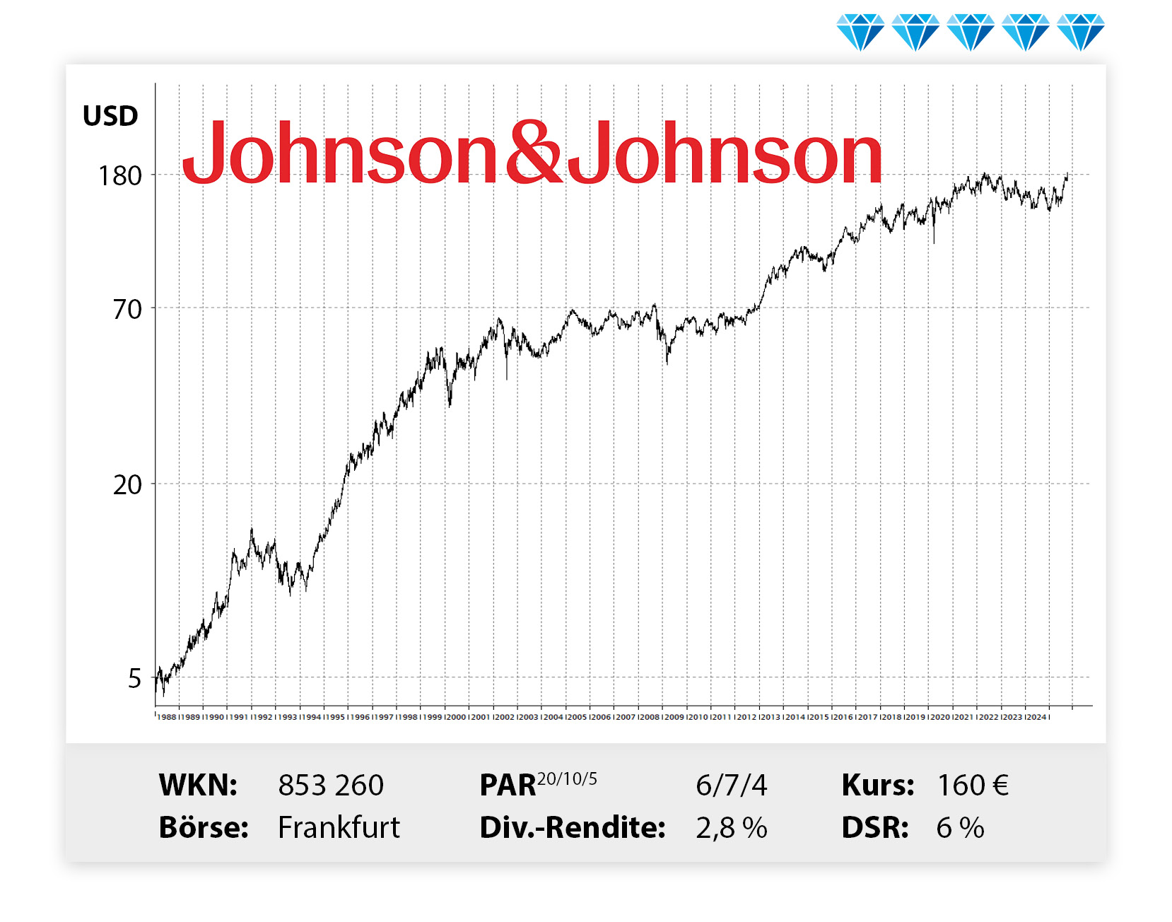 Steigert seit 62 Jahren die Dividende. 1886 durch die drei Johnson-Brüder gegründet (das Unternehmen müsste also eigentlich Johnson & Johnson & Johnson heißen), ist Johnson & Johnson heute der größte Gesundheitskonzern der Welt. Auch wenn der Aktienkurs zuletzt eher seitwärts lief, so beeindruckt doch die …