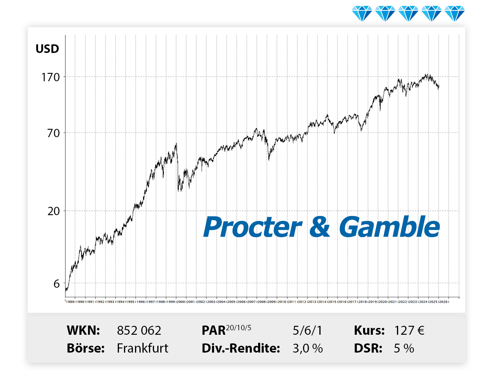 Fünf Prozent mehr Dividende. Es gibt Aktien, die halten sich auch in schwierigen Phasen regelmäßig stabiler als die meisten anderen. Ein solcher Titel ist Procter & Gamble. Der weltgrößte Konsumgüterkonzern kann sich darauf verlassen, dass seine Produkte auch in schwierigeren Wirtschaftsphasen gekauft werden. Vielleicht auch …