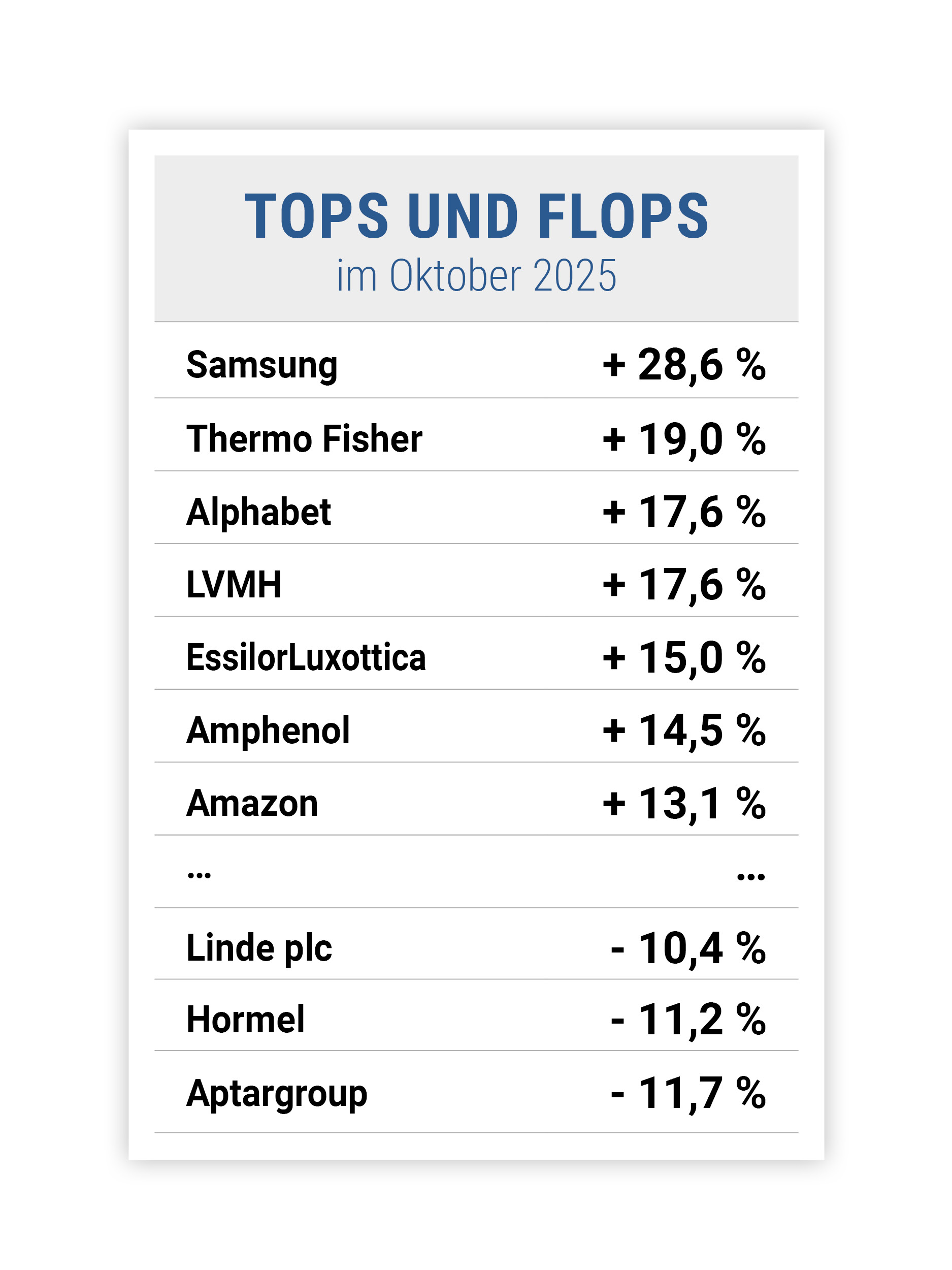 Der Oktober war geprägt von einer wie so häufig volatilen Quartalszahlensaison. Während beim Luxusriesen LVMH endlich die Wende nach oben eingeleitet scheint, zählt mit EssilorLuxottica (trotz der Regierungskrise in Paris) ein zweites französisches Unternehmen zu den Top-Performern unter unseren Wachstumswerten. Auch Thermo Fisher hat mit …